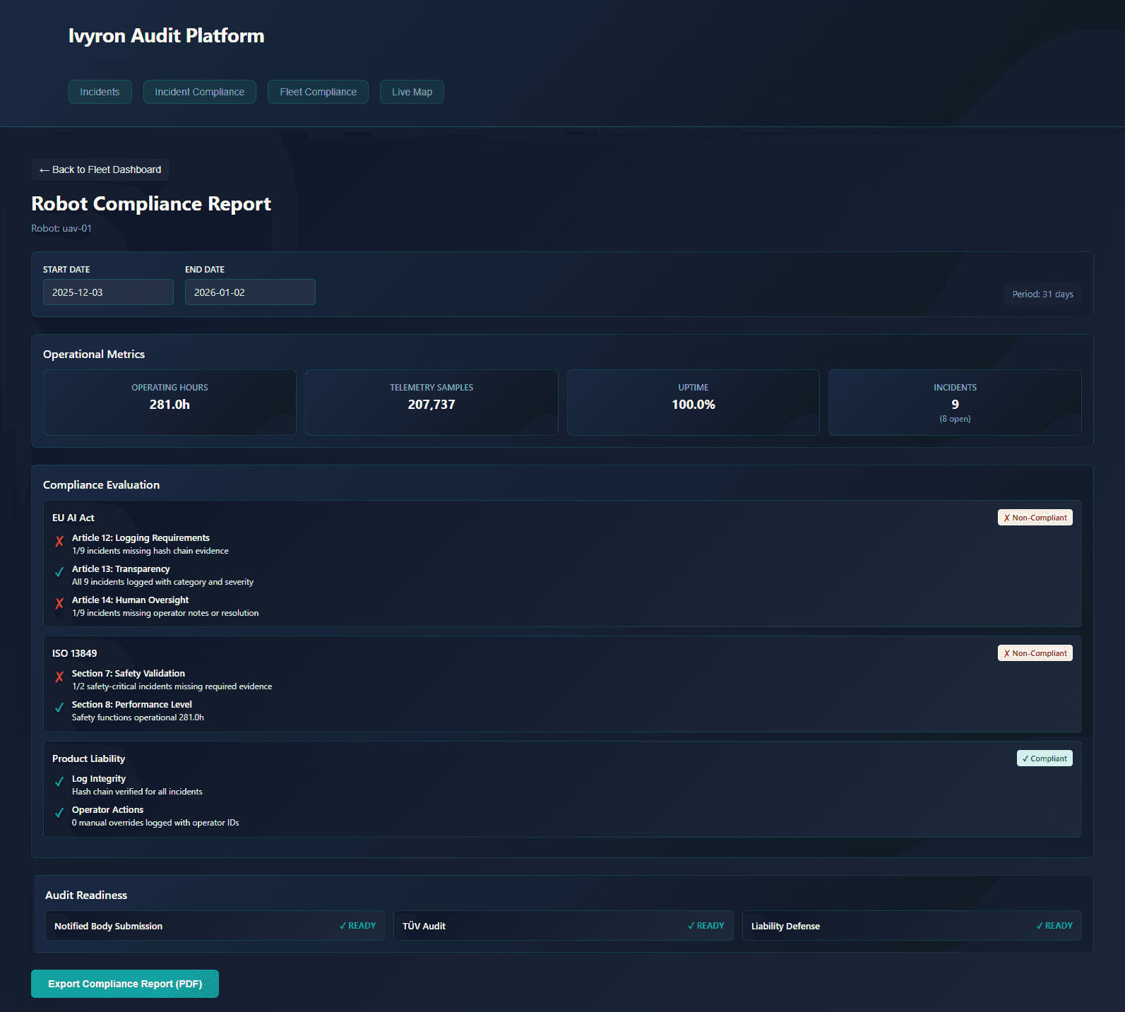 Ivyron Audit is an evidence and audit infrastructure for autonomous systems operating in regulated environments.